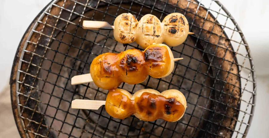 Yakimochi chewy mochi, savory-sweet soy glaze